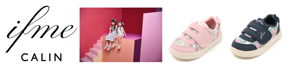 「ifme CALIN」は、「かわいいをシェアする」をコンセプトに、ママと女の子が共に“かわいい”と思えるデザインを取り揃えています。花柄 模様や、ベルト部分に一際目を引く大きなモチーフをあしらうなど、ポップでキュートなデザインが人気のブランドです。ファーストシュ ーズ・ベビーサイズ・キッズサイズまで展開があり、その愛くるしいシューズたちは SNS でも注目を集めています。