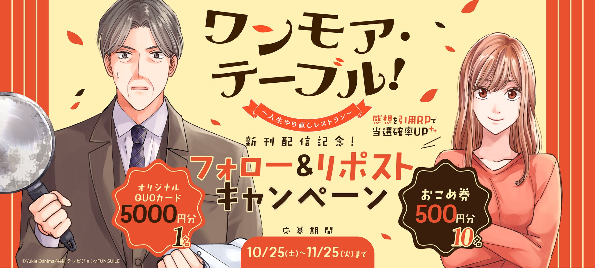 ・ 内容 : X(コミックアウル公式)のフォロー&リポストで抽選でQUOカードやお米券をプレゼント。感想引用リポストで当選確率アップ!
