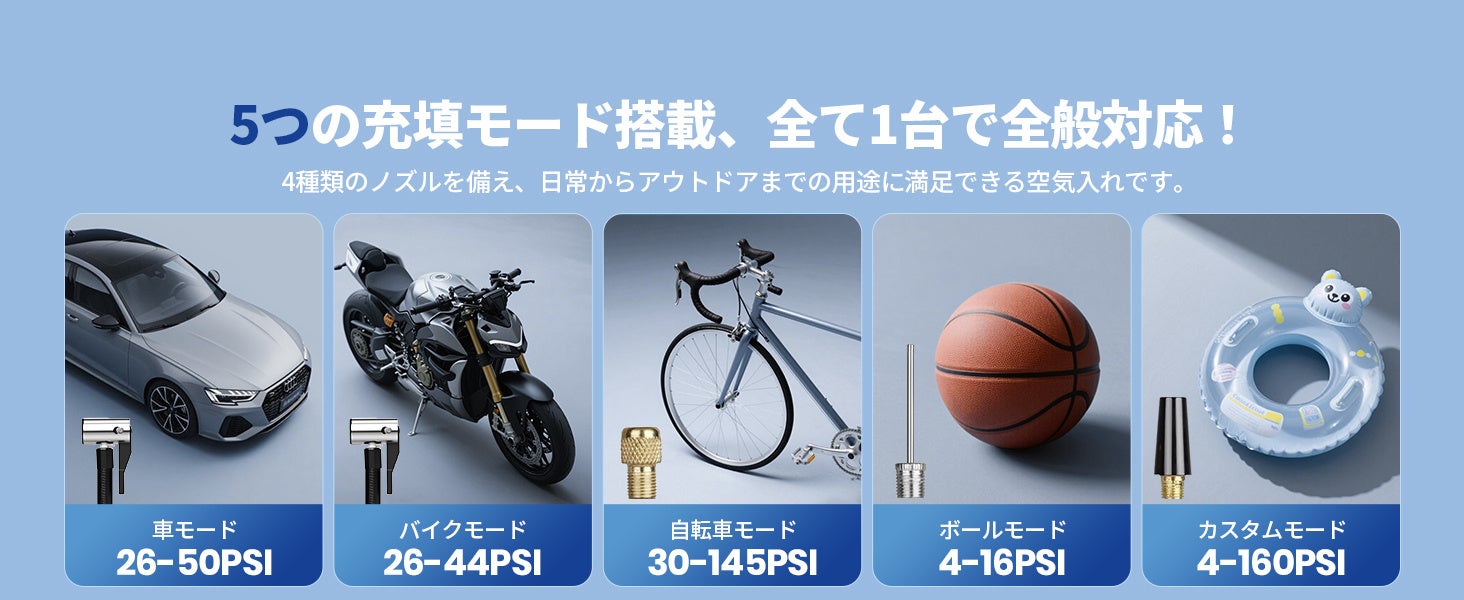 大容量バッテリーと高効率な冷却システムを備え、車・バイク・自転車・ボールなど様々なシーンに対応。さらに、低騒音設計と多機能ディスプレイにより、使いやすさと安全性も両立しました。