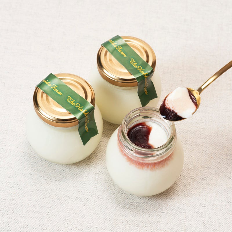 クリーム色の黄身のみを使用することで、卵の味わいはそのままに、とろける食感に仕上げました。真っ白なプリンと山ぶどうソースが織りなす赤で「鶴」(アイヌ語で "サルルン" )をイメージしています。まろやかな甘さが特徴の『てんさい糖』を使用。