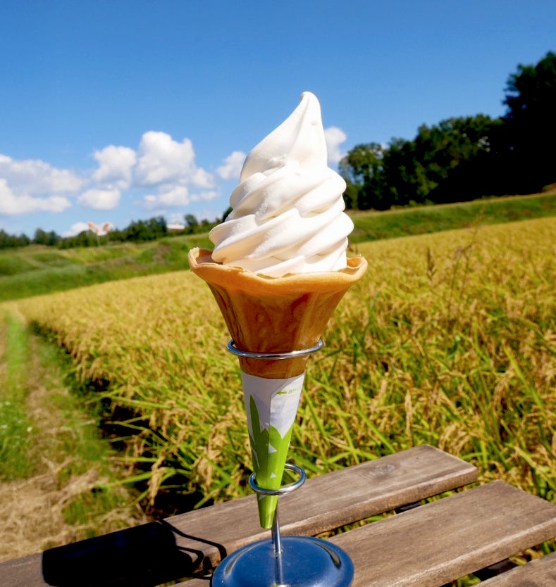 当農場で栽培した自慢のお米でつくる「米麹甘酒」のソフトクリーム。お米由来のコクとすっきりした甘さが特徴です。