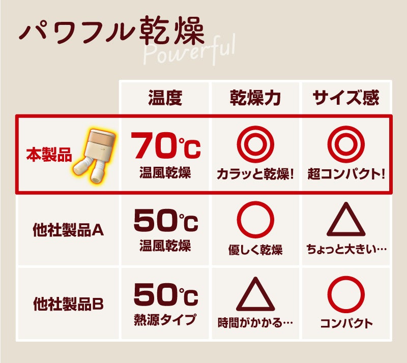 靴箱に入る超小型サイズの温風式シューズドライヤー
