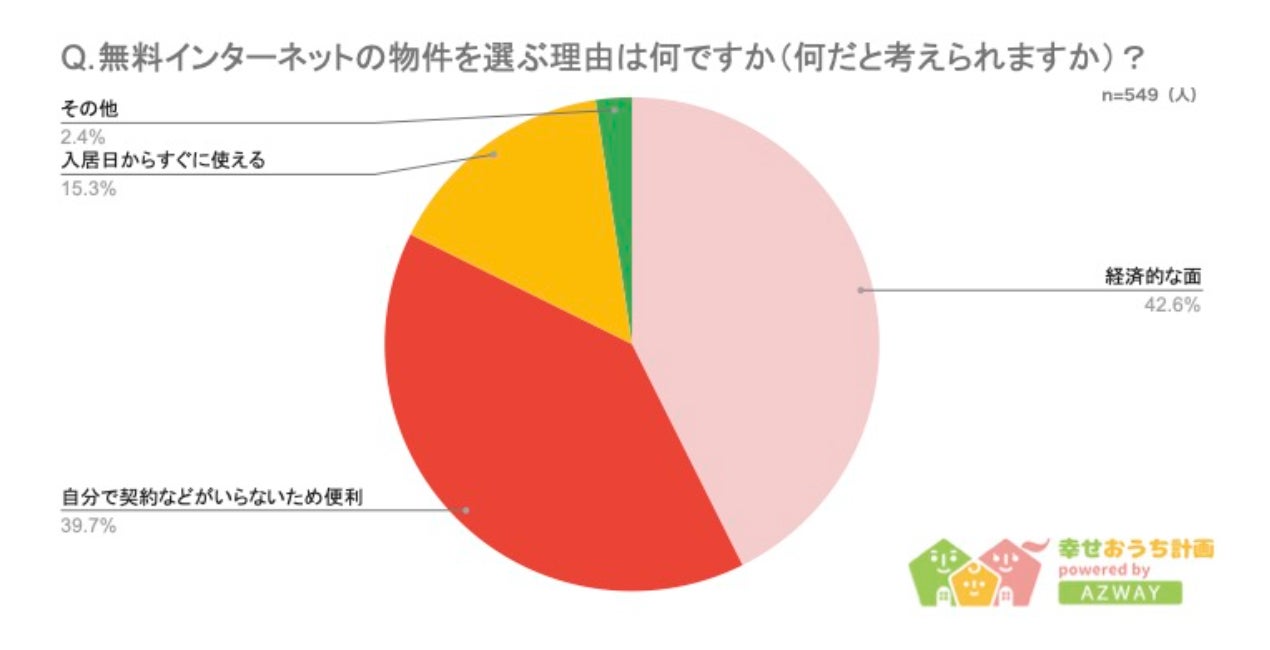 ・インターネット無料物件を選ぶ理由は「経済的な面」が1位、トラブルは2割程度