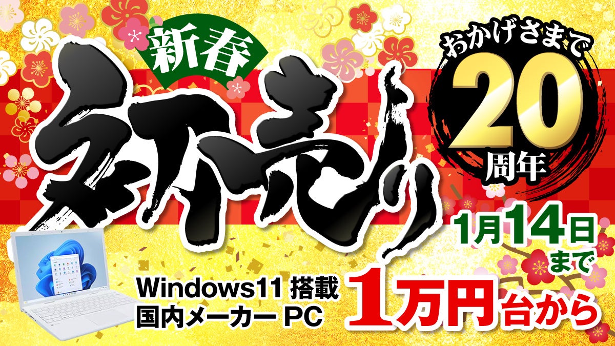 期間中は多数商品を特別価格でご提供するほか、お年玉特典として中古パソコン全品に3年間保証が付きます。(訳あり商品を除く)
