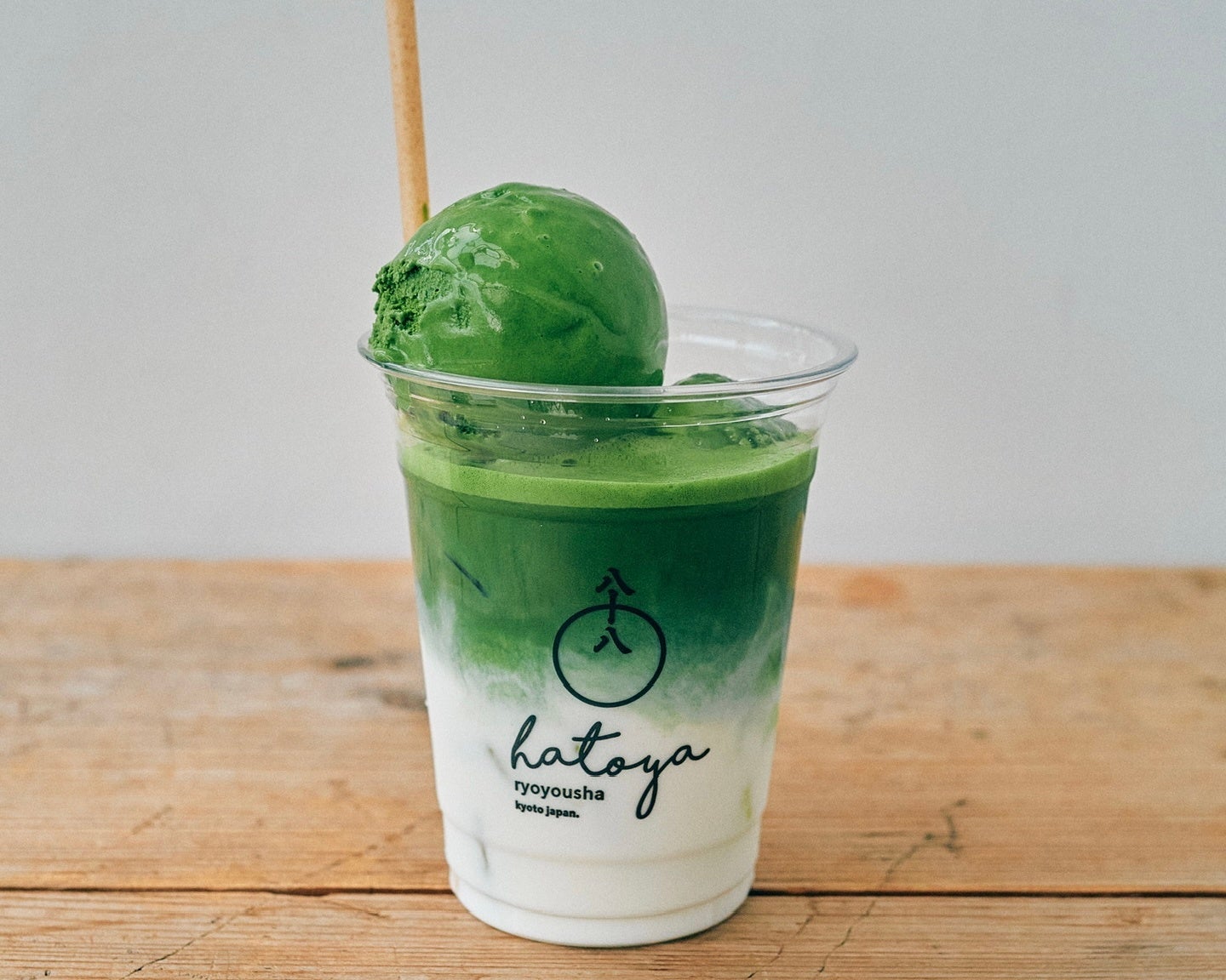 最高級の“宇治五ヶ庄産手摘抹茶うじひかり品種”を惜しげもなく使用した抹茶ラテに、同じく“宇治五ヶ庄産手摘抹茶うじひかり品種”を使用した1カップ5,480円の「抹茶アイス 無上」※1を乗せました。
