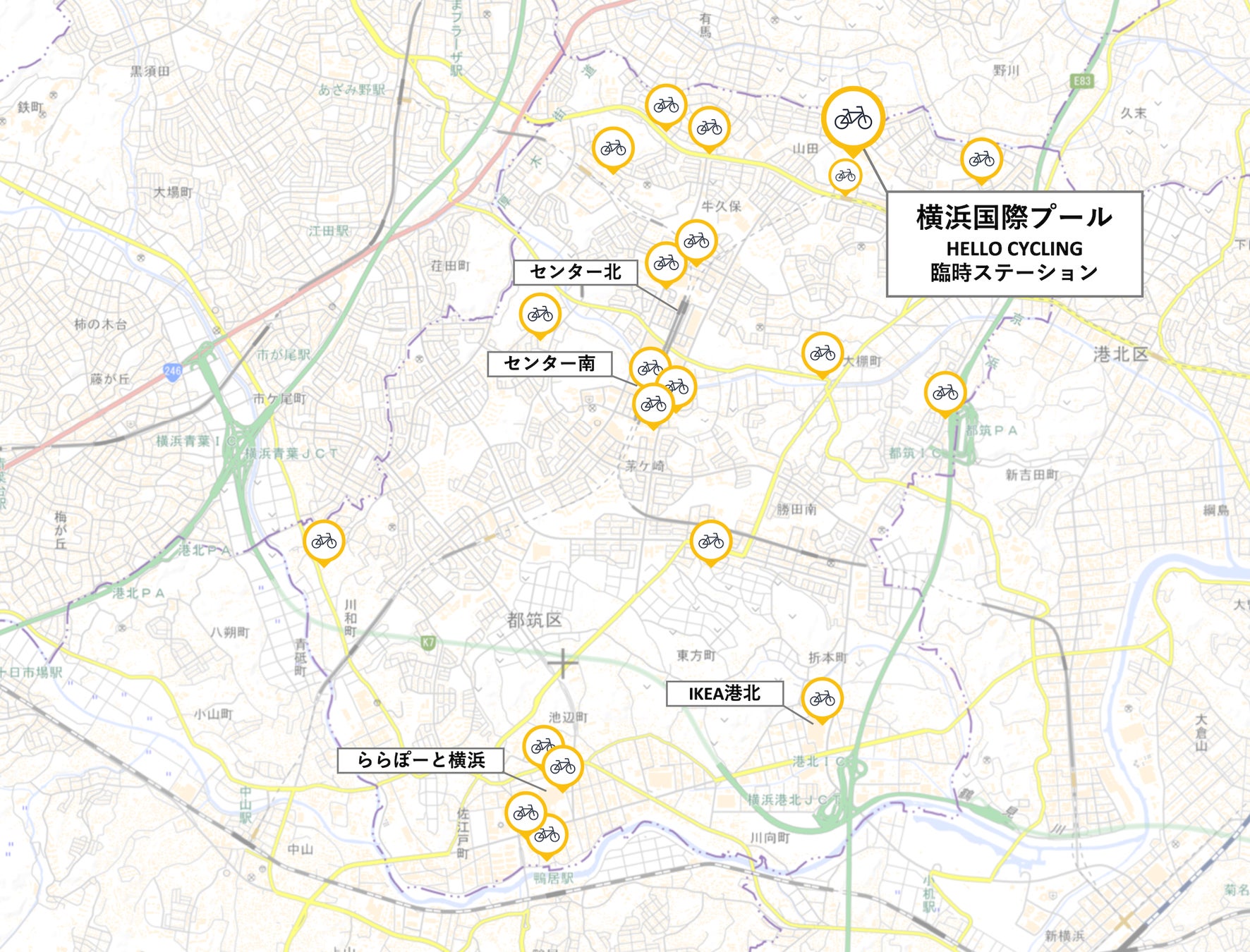横浜市都筑区内には、20ヶ所のステーションがあります。