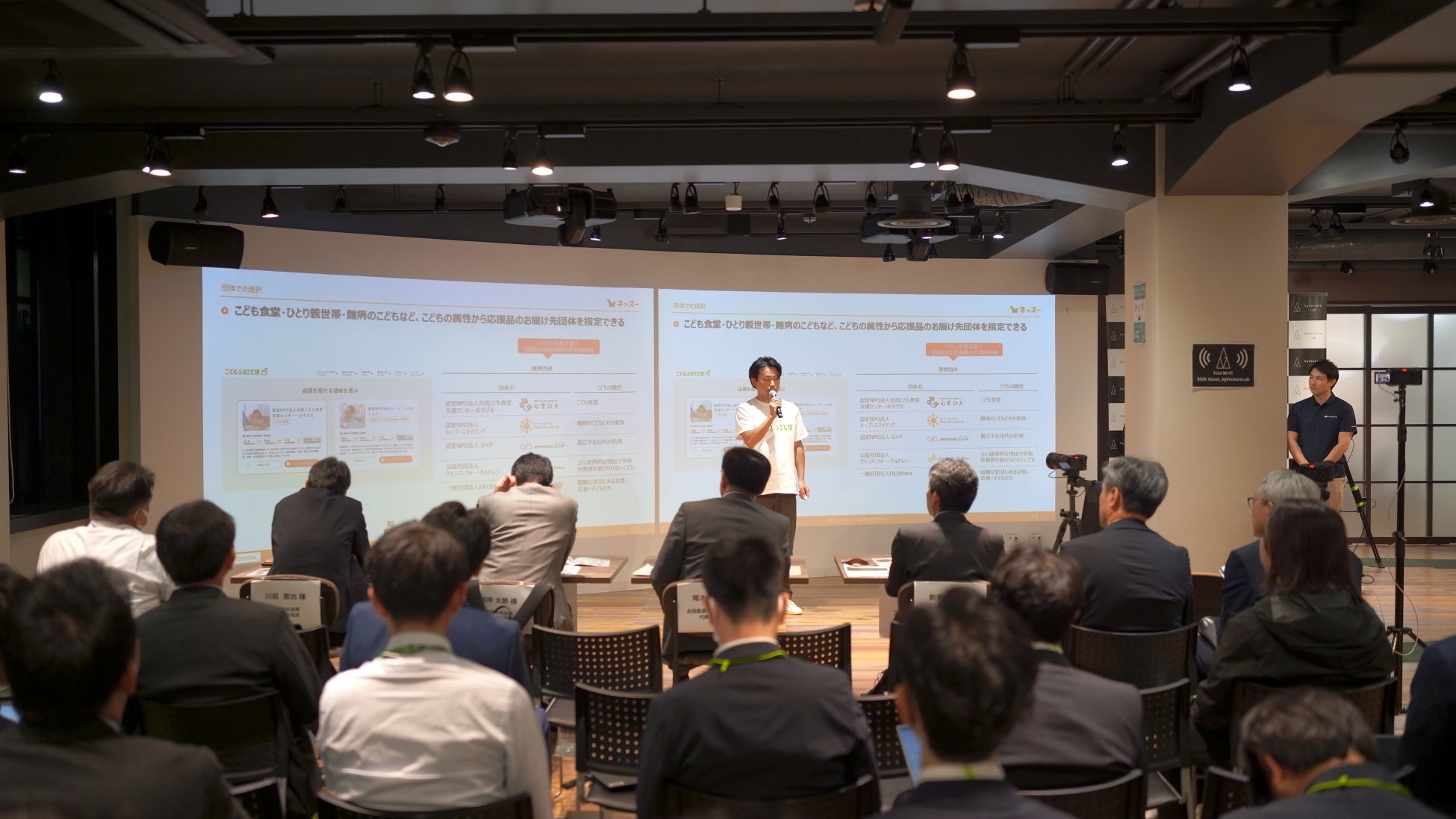北海道枠として採択されたネッスーは、大手町、札幌の2か所で成果発表会に参加し、伴走期間中にホクレン・JAグループと連携して開拓した「北海道音更町」プロジェクトの概要や、こどもたちに届ける”応援品”の物流ネットワーク構築について紹介しました。