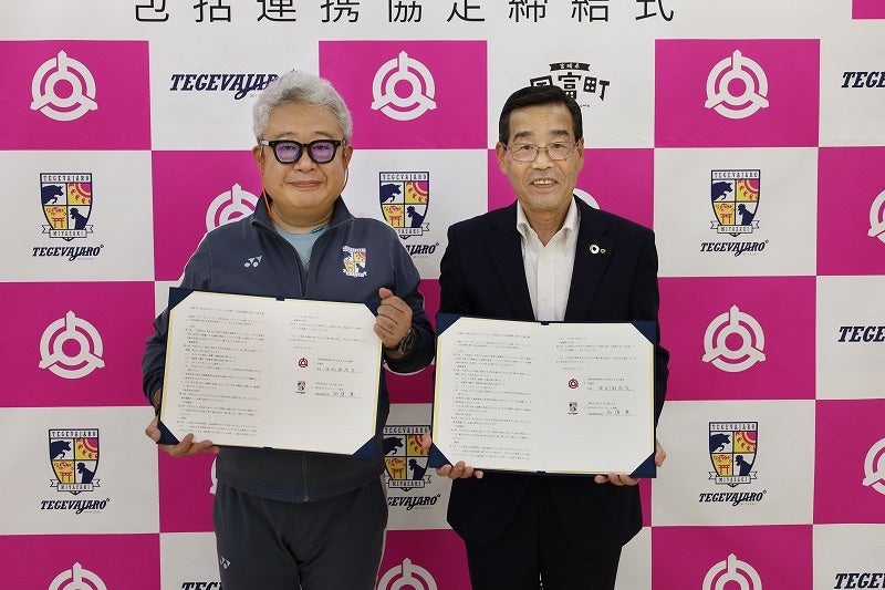 6月19日(水)、宮崎県国富町(町長:中別府 尚文)は、株式会社テゲバジャーロ宮崎(代表取締役会長:石原 実)と、地域活性化へ向けた包括連携協定を締結しました。町の課題であるスポーツ振興、観光、シティプロモーション等に対し、同クラブの強みであるサッカーを中心としたスポーツ振興、地域活性化の創出および試合時の町のPRなどを連携させることで、地域活性化と町民福祉の向上を協働で目指してまいります。