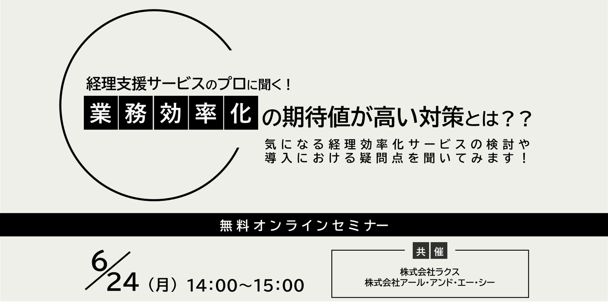 本セミナーは、CMでおなじみの幅広いバックオフィス系のクラウドサービスを提供する【株式会社ラクス社】と、導入実績No.1の入金消込自動化サービスを提供する【株式会社アール・アンド・エー・シー社】の2社を招き、視聴者への投票形式のアンケートをもとに、気になる経理業務効率化のあれこれを質問いたします。