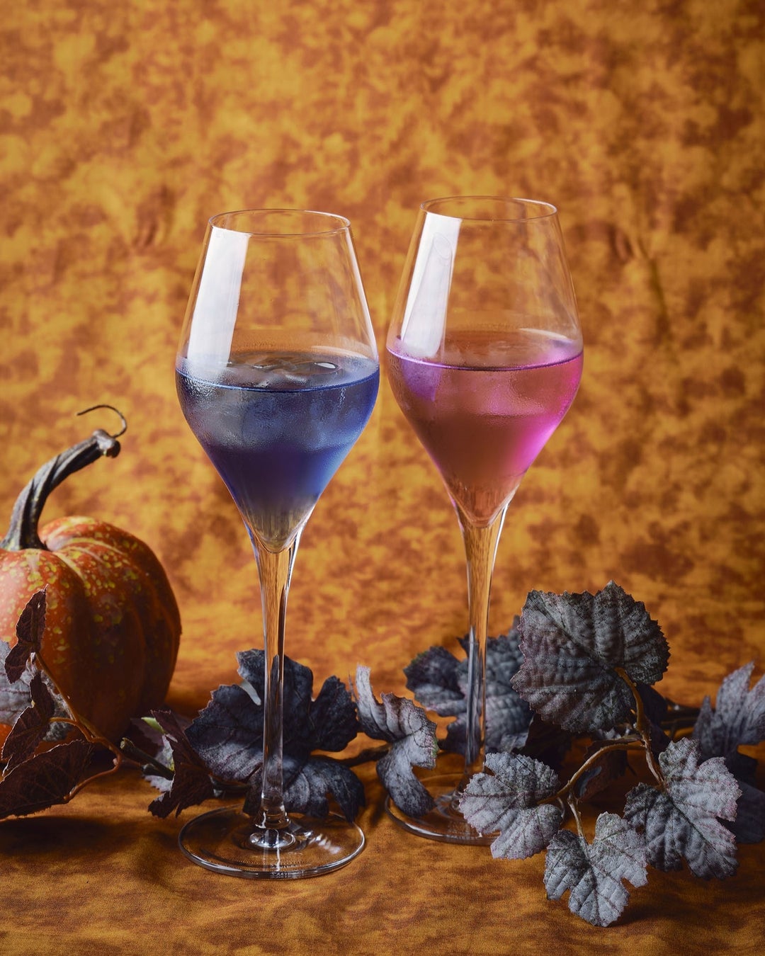 インスタグラムでセンタラグランドホテル大阪のアカウントをフォローし、「#トリックorタイ」のハッシュタグを付け、その場で写真や動画を投稿いただいた方には、オリジナルのハロウィンドリンクをプレゼントいたします。バタフライピーをベースにした鮮やかなブルーのドリンクに特製シロップを入れると、まるで魔法がかかったかのように色が大変身します。
