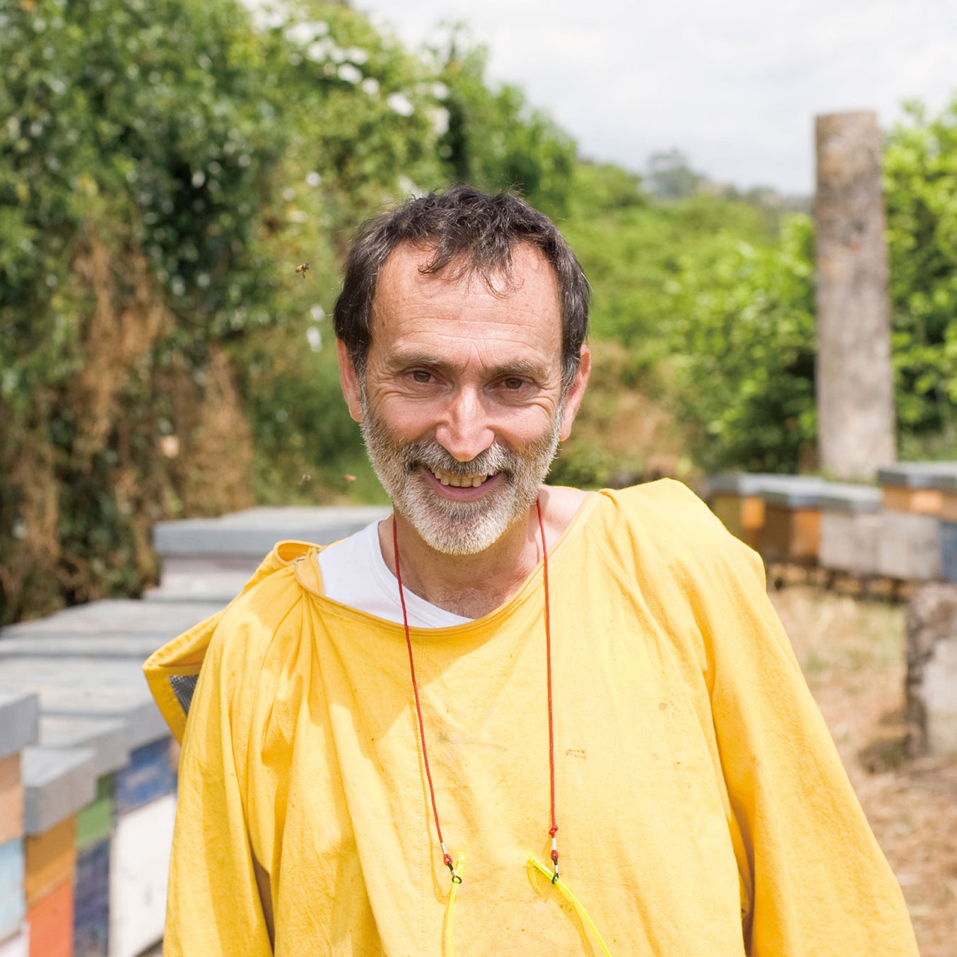 ココ氏は20 歳から養蜂を始め、養蜂歴40 年以上のベテラン養蜂家です。シチリア島の養蜂協会会長を務めたり、各国に養蜂を教えに行ったこともあるそう。ココ氏の養蜂場は地中海最大の活火山エトナ山周辺を中心に点在しています。自然や環境をよく観察することが養蜂業を営むにあたってココ氏が最もこだわっている点です。ミツバチにやさしい環境が人間にもやさしい環境であるという考え方から巣箱の設置場所、ミツバチの管理方法にも哲学があり、ココ氏のはちみつは全てイタリアのオーガニック認定(ICEA)を受けています。