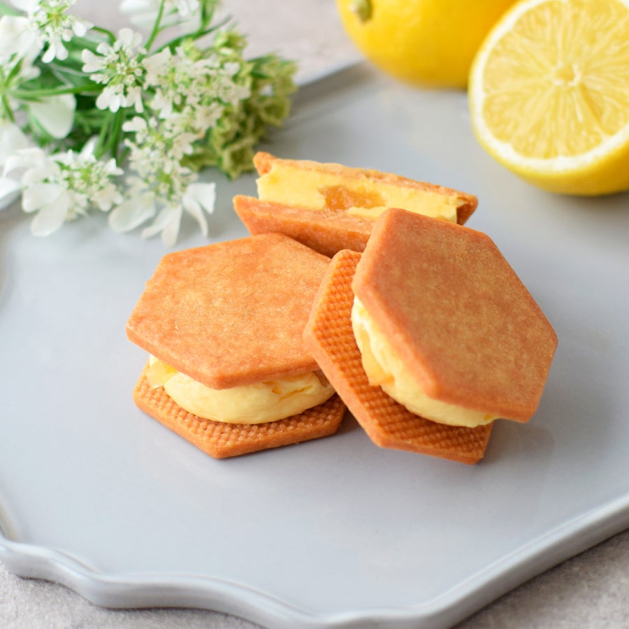 ■商品説明:AOP イズニー発酵バターとラベイユハニーで作ったバターサンド。スペイン産レモンはちみつのさっぱりとした甘みと香りが拡がる、季節限定の味わい。レモンピールのほろ苦さも感じられる爽やかな後味です。