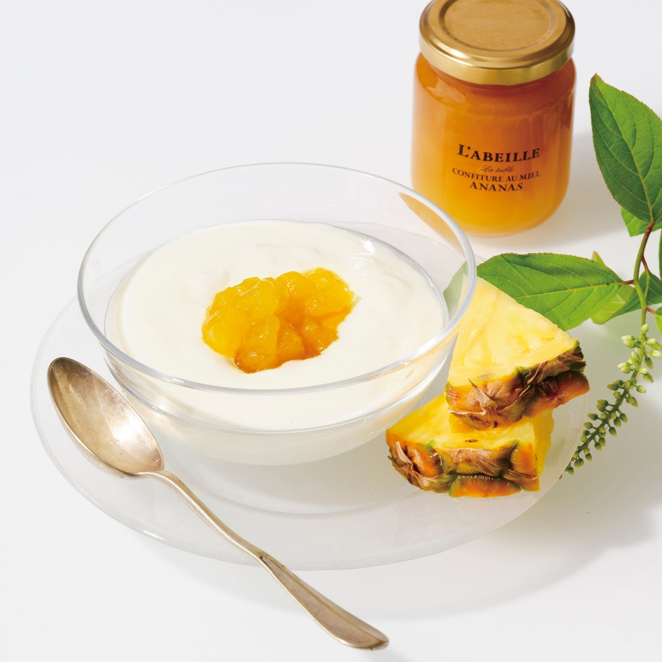このほか、フルーティーな風味が際立つゴールデンパイナップルをたっぷりのラベイユハニーで煮詰めた「はちみつコンフィチュール パイナップル」は、パイナップルのほどよい酸味とはちみつのやさしい甘さ、ごろごろとした果実感が楽しめます。ご自宅での夏のテーブルシーンや大切な方へのサマーギフトにおすすめです。