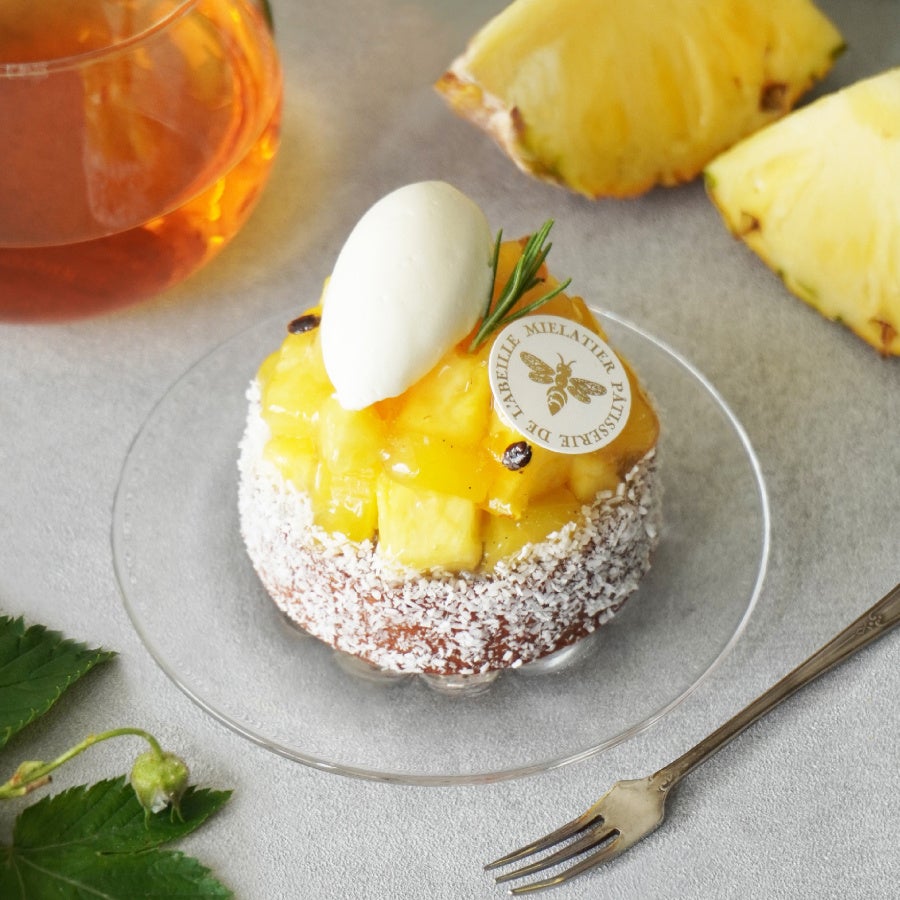 はちみつブランド ラベイユから誕生した世界初のはちみつパティスリー ミエラティエでは、砂糖を一切使用せずラベイユハニーを贅沢に使ってスイーツを作っています。ライチのはちみつを使ったパイナップルとココナッツのタルト「タルト ミエル アナナス」、バニラのムースにトロピカルフルーツを合わせた贅沢な味わい「キャラメル ヴァニーユ トロピカル」を5 月31 日(土)から発売中です。夏のティータイムや手土産にどうぞ。