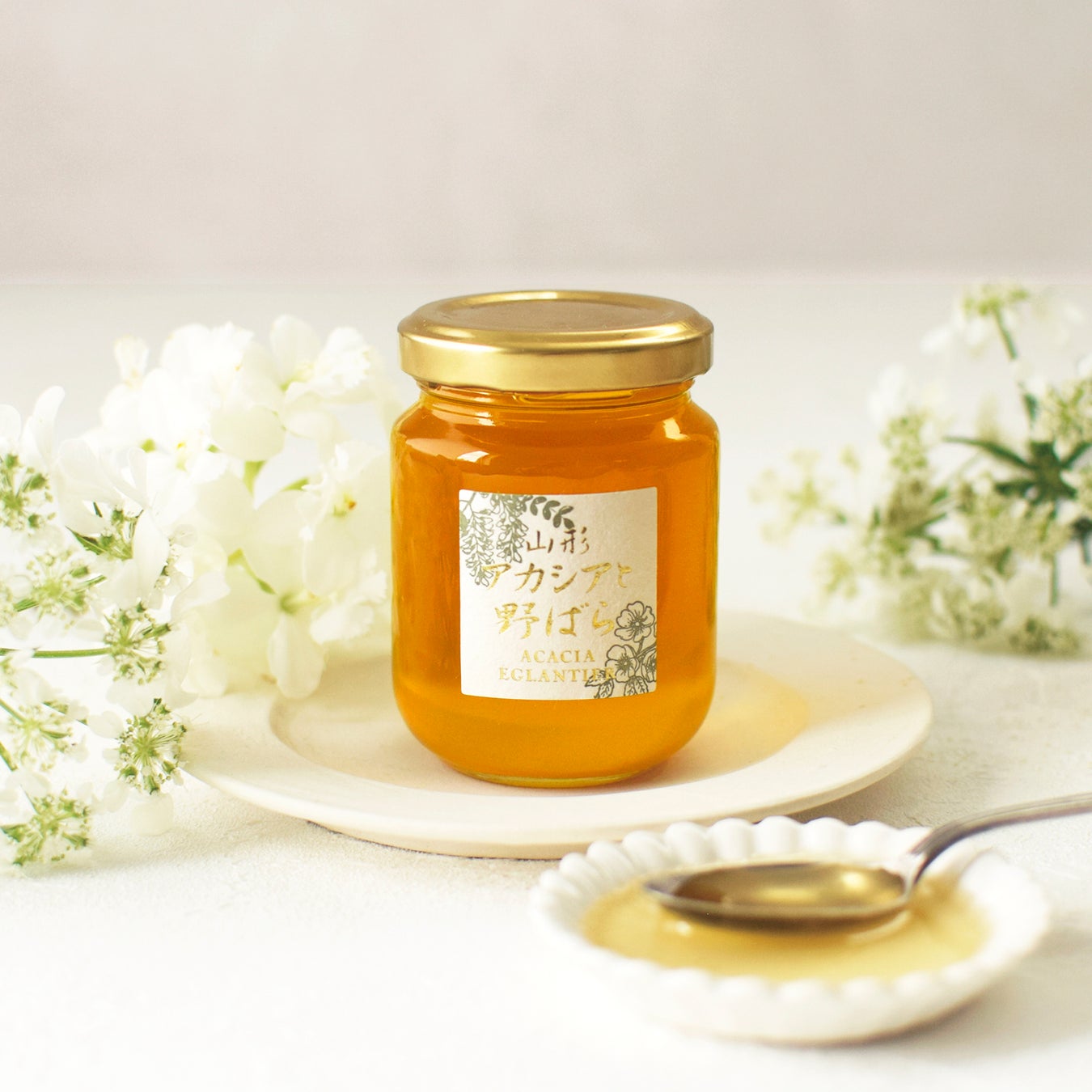 ■商品説明:自然豊かな山形県鬼面川周辺で採れたアカシアや野ばらなどの百花蜜。まろやかでコクのある甘みと後から感じる清涼感、ほんのりとある香ばしさが特徴。バタートーストやヨーグルト、クリームチーズによく合います。養蜂家さんおすすめのレシピは、生姜を輪切りにしてはちみつに漬けこんだはちみつジンジャエール。暑い夏の日にぴったりです。