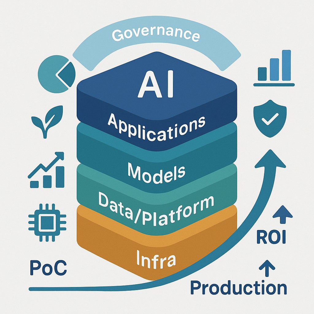 本白書では、インフラストラクチャ層からガバナンス・監視層に至る全階層について導入形態、主要ツール・モデル特性、関連の市場動向、先進機能、外部連携、レイヤー間依存関係を詳述している。特に、概念実証(PoC)から本格導入に至る企業タイムライン、エージェント設計パターン(ReAct、Planning、Multi-Agent等)、ベンダー戦略とロックイン回避、経済性(ROI/TCO)評価、セキュリティ・リスク管理、法務・規制対応といった実務上の critical な論点を網羅している。