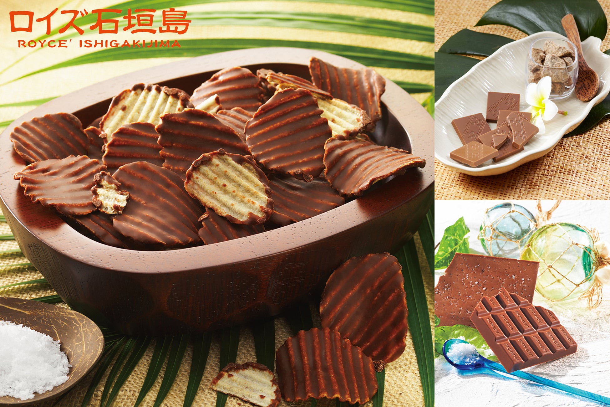 (左)ポテトチップチョコレート[石垣の塩](190g)864円