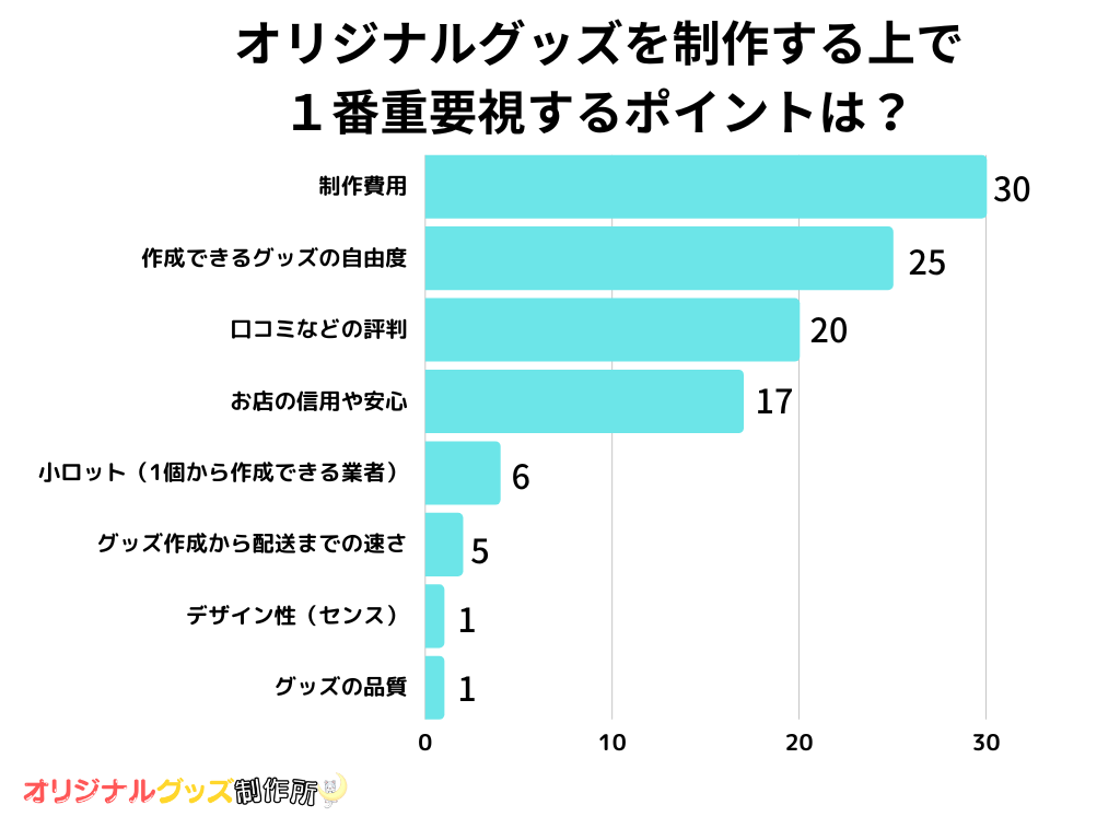 【調査レポート】オリジナルグッズを制作する上で1番重要視するポイントはなんですか?1位は『制作費用』でした!