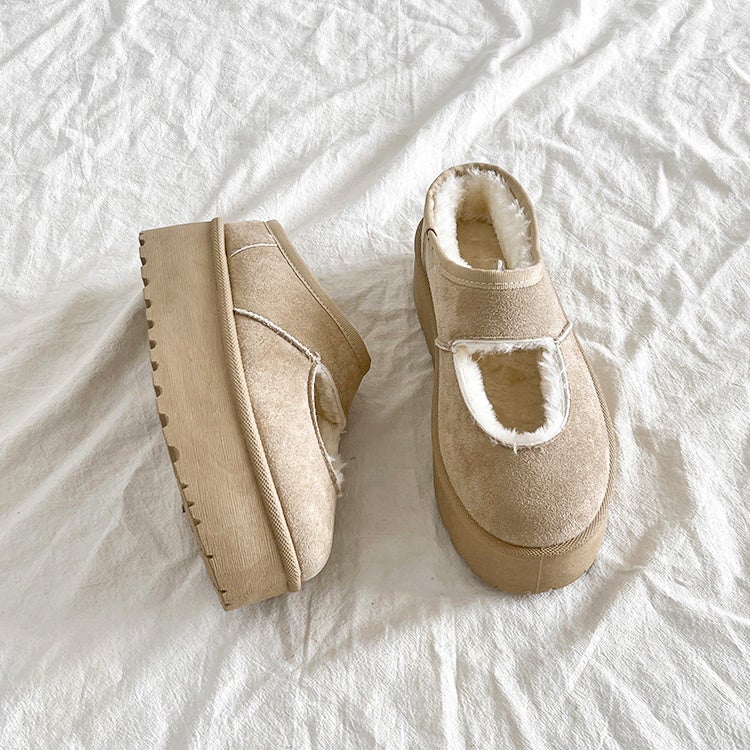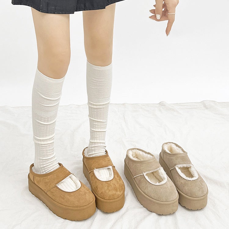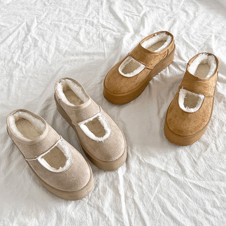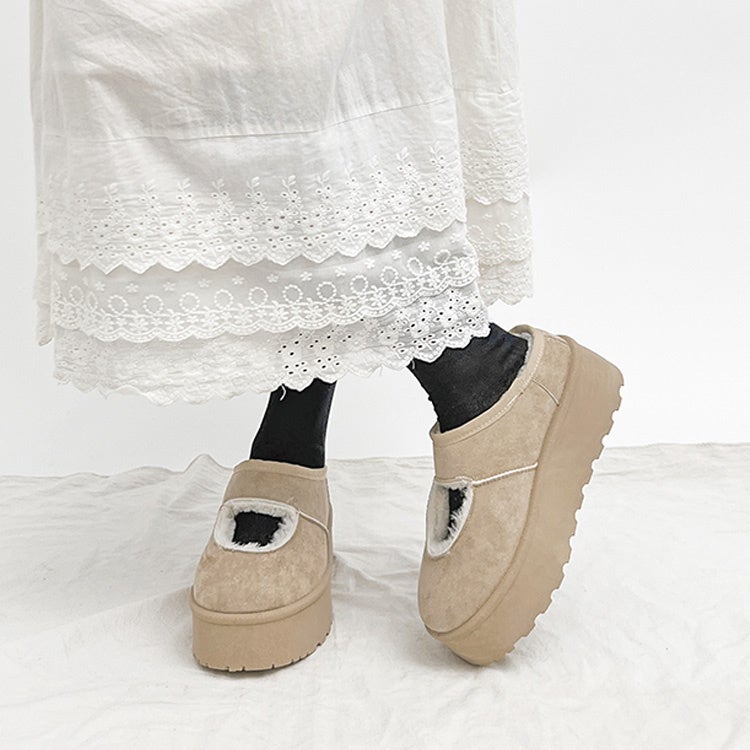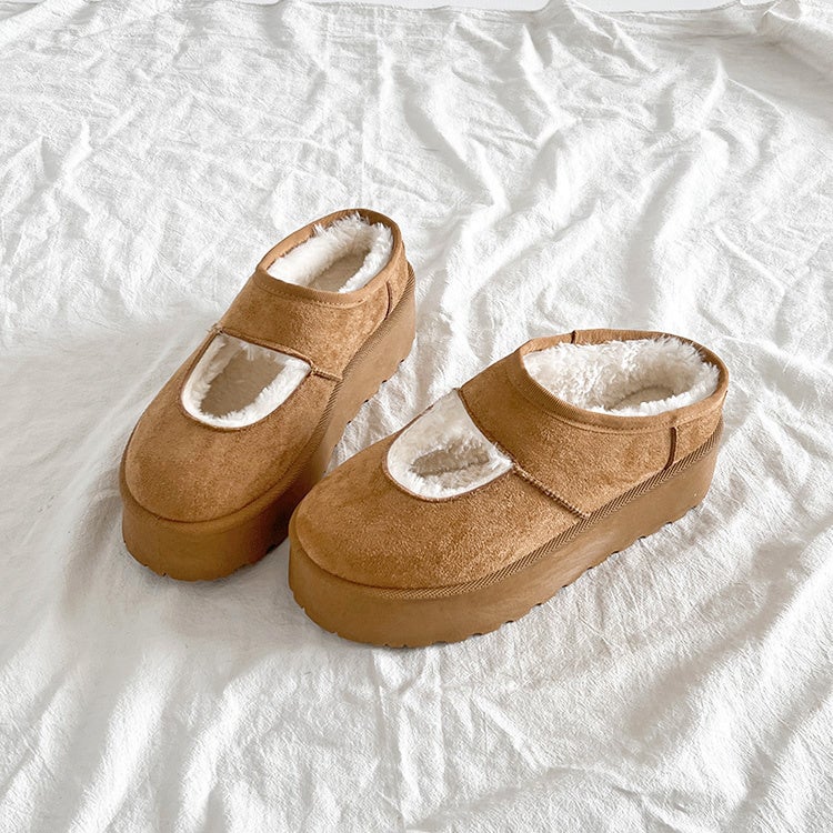 商品名:軽量厚底 もこもこファー メリージェーン ムートン スリッポン 6465