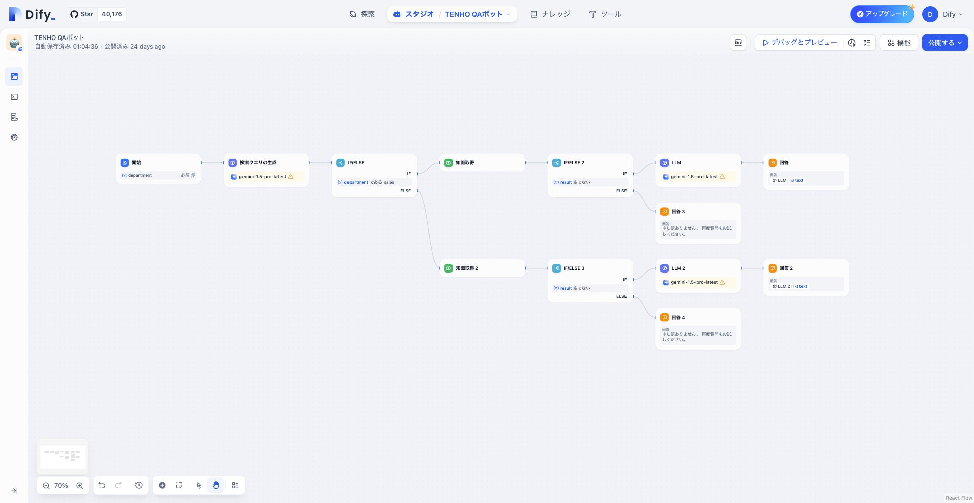 Difyを使用することで、専門的なプログラミング知識がなくても、直感的な操作で強力な生成AIツールを開発・カスタマイズすることができます。これにより企業は、独自のニーズに合わせたAIソリューションを迅速に導入し、競争優位性を高めることが可能です。