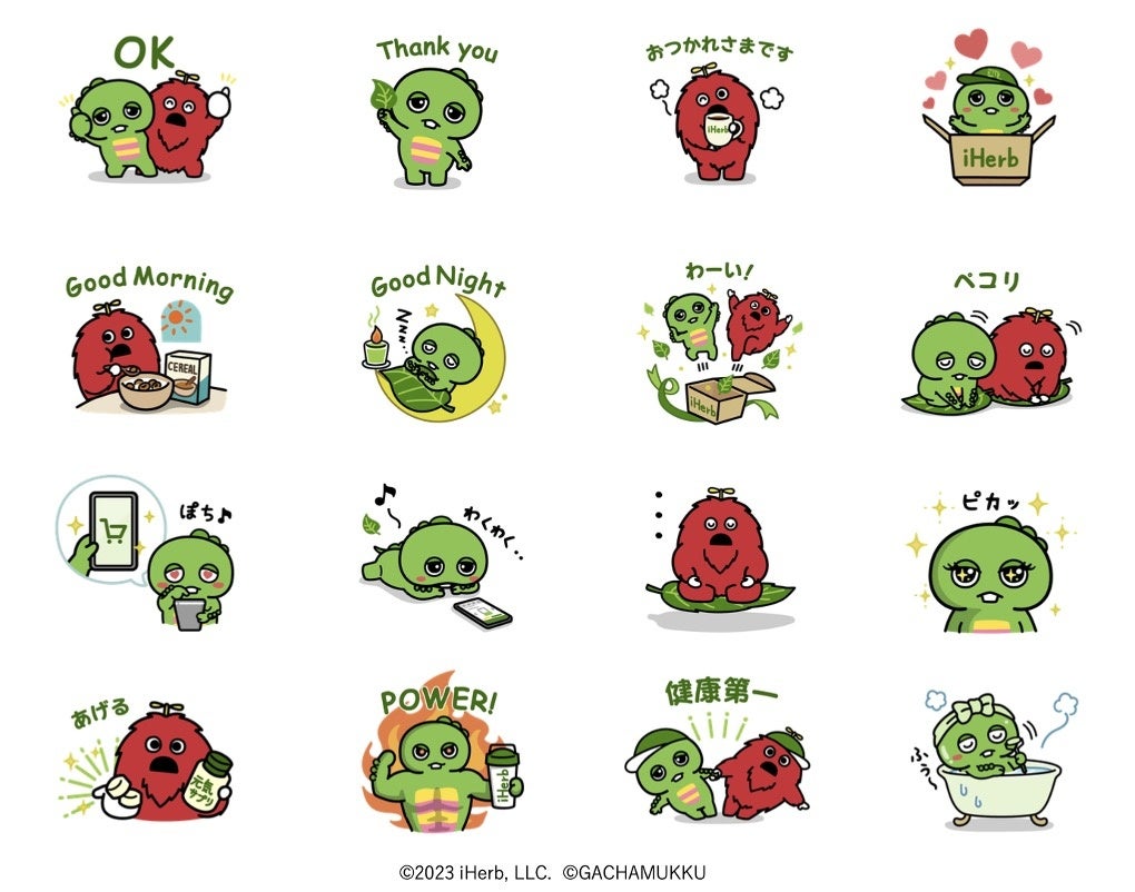 iHerbのLINE公式アカウントから、大人気キャラクターのガチャピン・ムックとコラボレーションした「iHerb」オリジナルLINEスタンプが登場