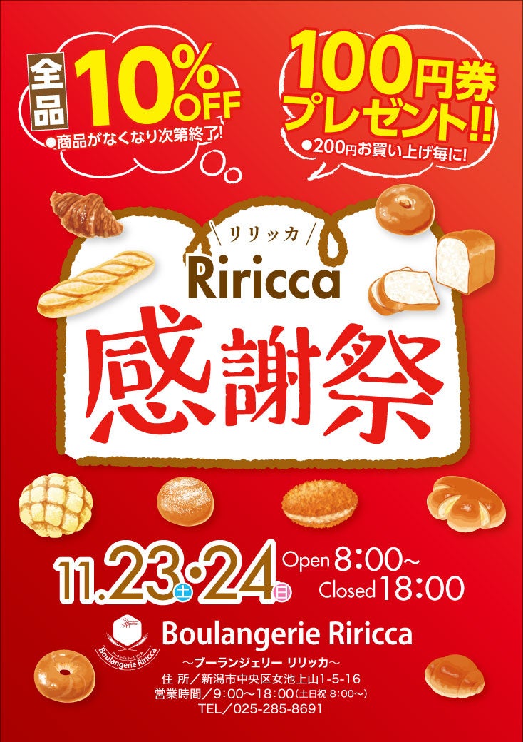11月23日からのリリッカ感謝祭では全商品・特別割引を実施