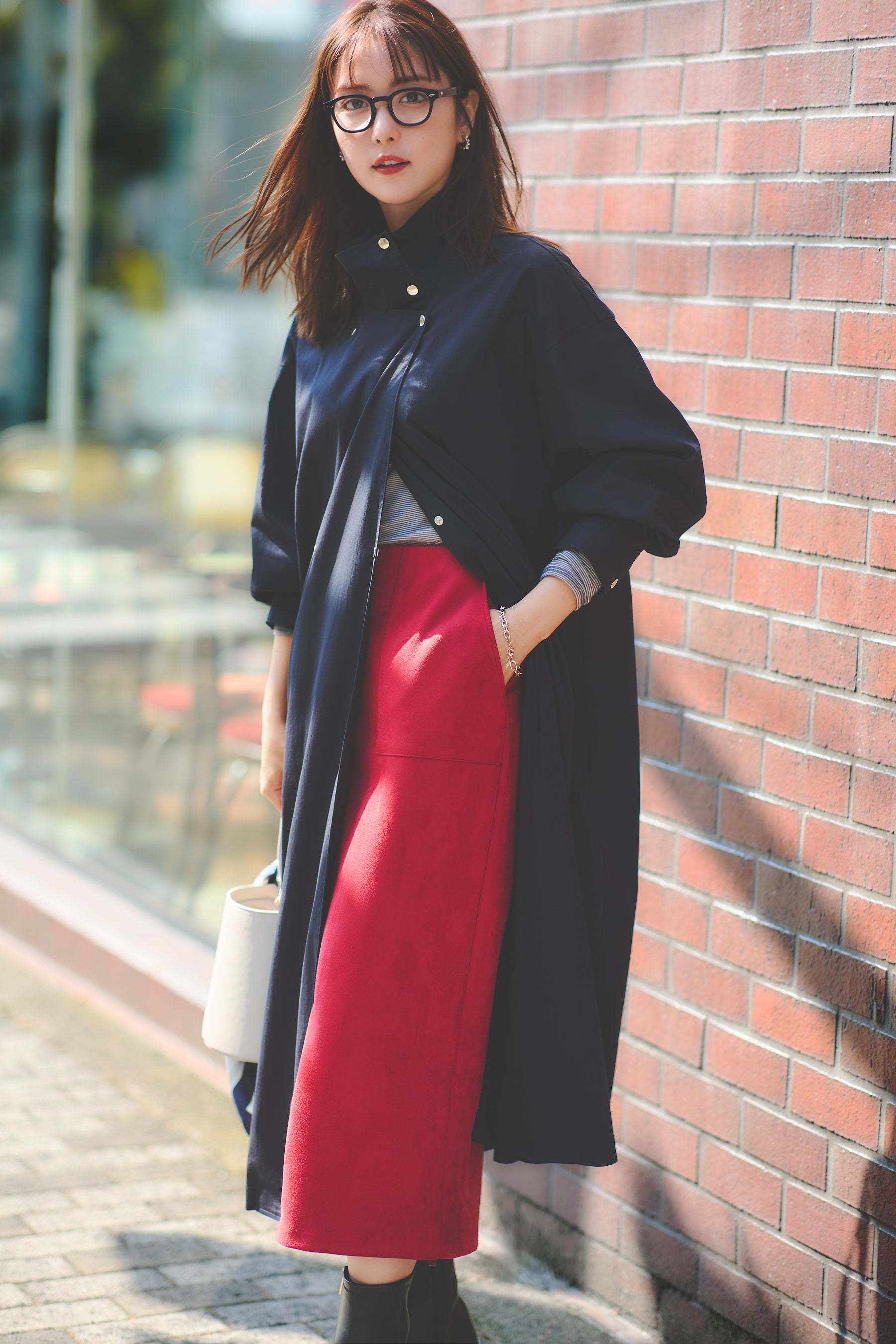 「どんな着こなしにもハマる“赤”だけれど、よりレディを意識するならスカートで取り入れて。タイトすぎないシルエットはコンサバに転ばず、スポーティなアウターとも好相性なんです。」