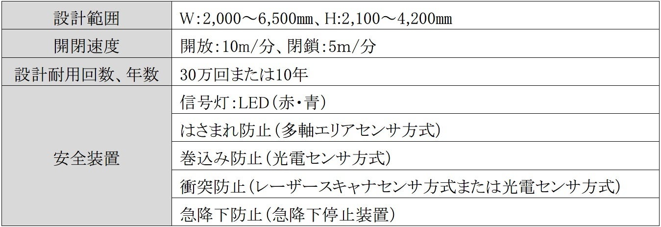 最大開口幅6,500㎜、最大開口高さ4,200㎜の大開口にも対応し、一般的な車両だけでなく消防車やゴミ収集車といった特殊車両の入出庫も可能です。