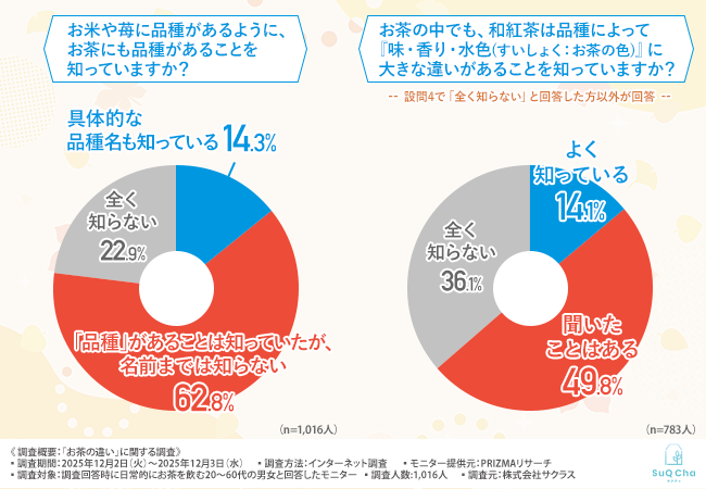 今回、「お茶の違い」に関する調査を実施した株式会社サクラスは、日本全国の和紅茶をお届けするサービス『SuQ Cha(サクチャ)』(https://www.suqcha.com/)を運営しています。