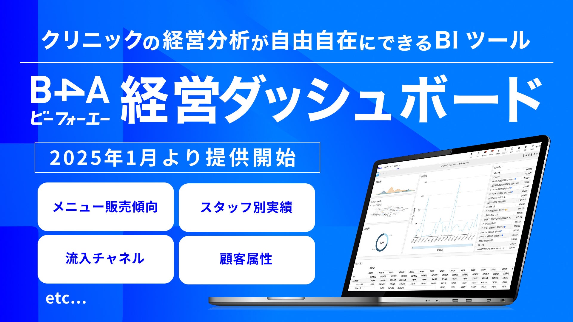 自由診療クリニック特化型のDXツール『B4A(ビーフォーエー)』が、クリニックの経営分析が自由自在にできるBIツール「B4A経営ダッシュボード」をリリース