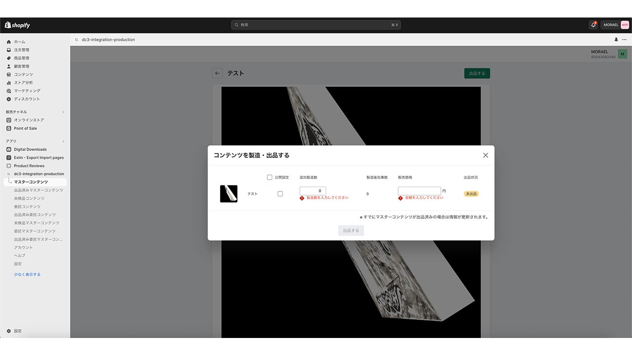 DC3 Integrationは、Shopifyで作成したECサイト上でDC3コンテンツを取り扱うことができるようにするための連携アプリです。