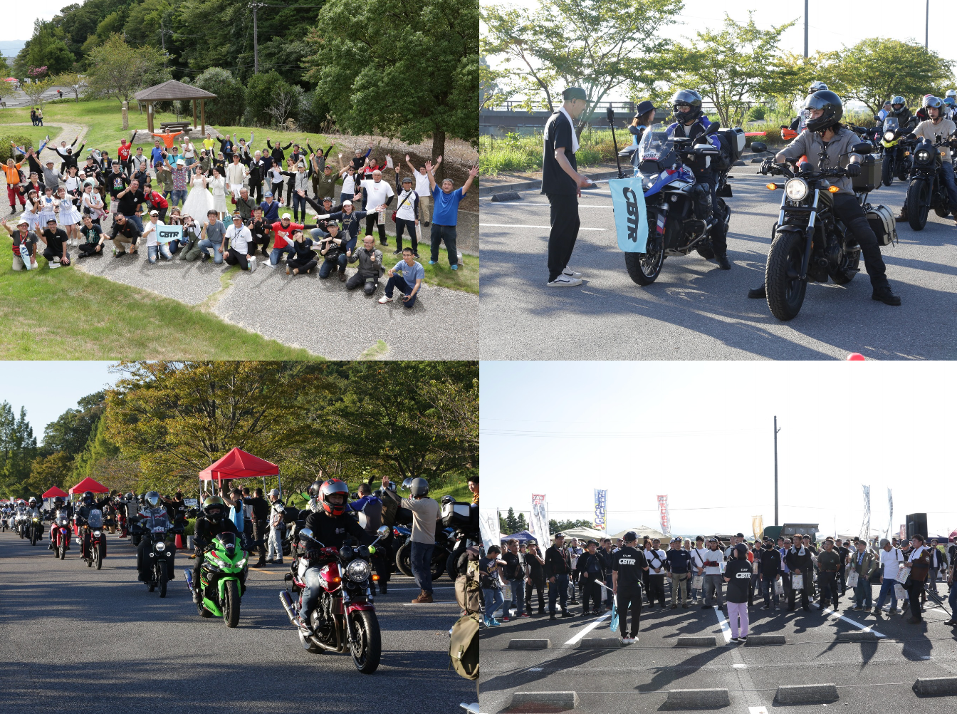 各回、参加ライダー全員での集合写真を撮影したのち、スタートゲートよりいよいよ出走がスタート。それぞれのフラッガーにエールをもらいながら、びわツー(琵琶湖ツーリング)へと出発されました。