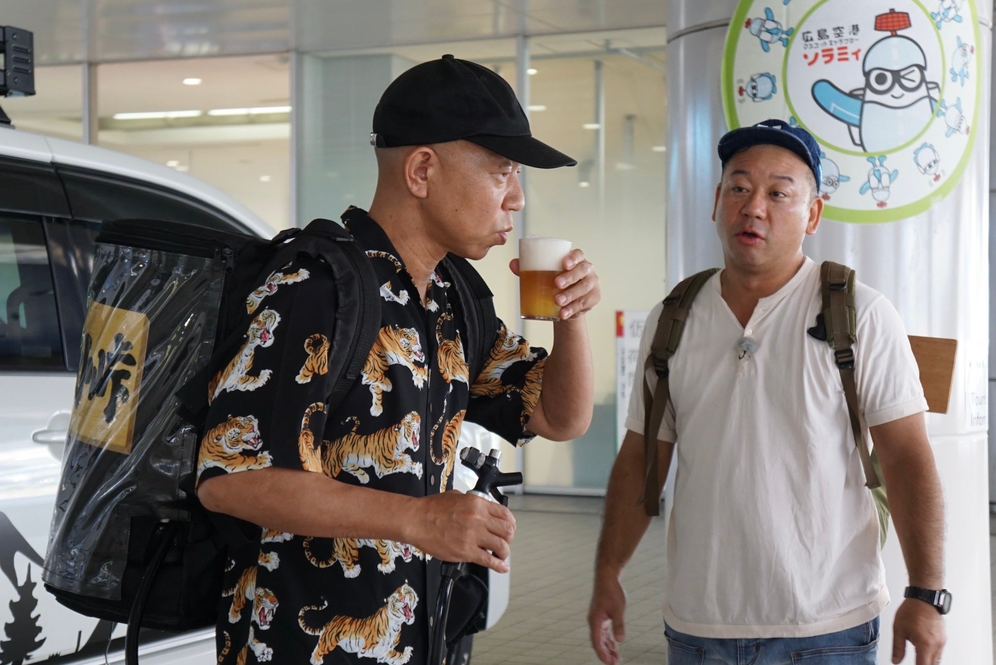 ロケ当日の朝、小峠を迎えるため、広島空港にやってきた西村。到着した小峠を見つけるなり、テンション高く大きな声で話しかけるが、小峠はどこか納得のいかない表情。「ずっと気になっていたことがある」と西村に切り出すと、「本当に200回か?ごまかしてないか?早すぎる」と、放送200回に対してまさかの疑惑を抱いていたことが発覚する。西村から説明を受け、渋々納得した小峠にスタッフから手渡されたのは、番組恒例の看板リュック…ではなく、
