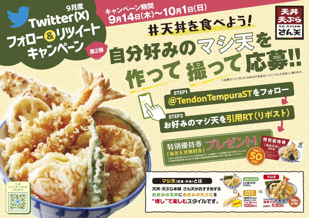 ~天丼・天ぷら本舗さん天のX(旧Twitter)公式アカウントをフォロー&RT(リポスト)しよう!~