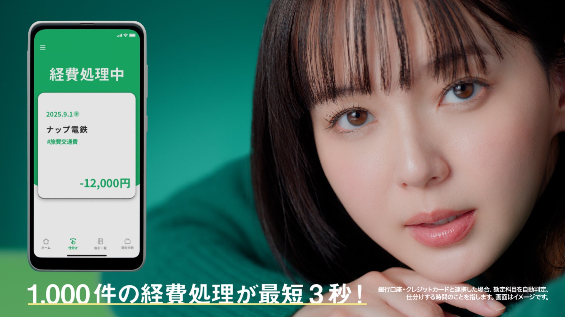 そんな悩みに寄り添うように、「そんなあなたに、タックスナップ!」と多部さんが明るくアプリを紹介。「面倒な経費処理はアプリに丸投げ!」「1,000件が最短3秒!」と、タックスナップの特長を次々にアピールします。画面には、実際のアプリ操作やスムーズに処理されていく様子も映し出され、サービスの利便性を訴求。ラストは、こたつからごろんと横なりリラックスした姿でCMは締めくくられます。