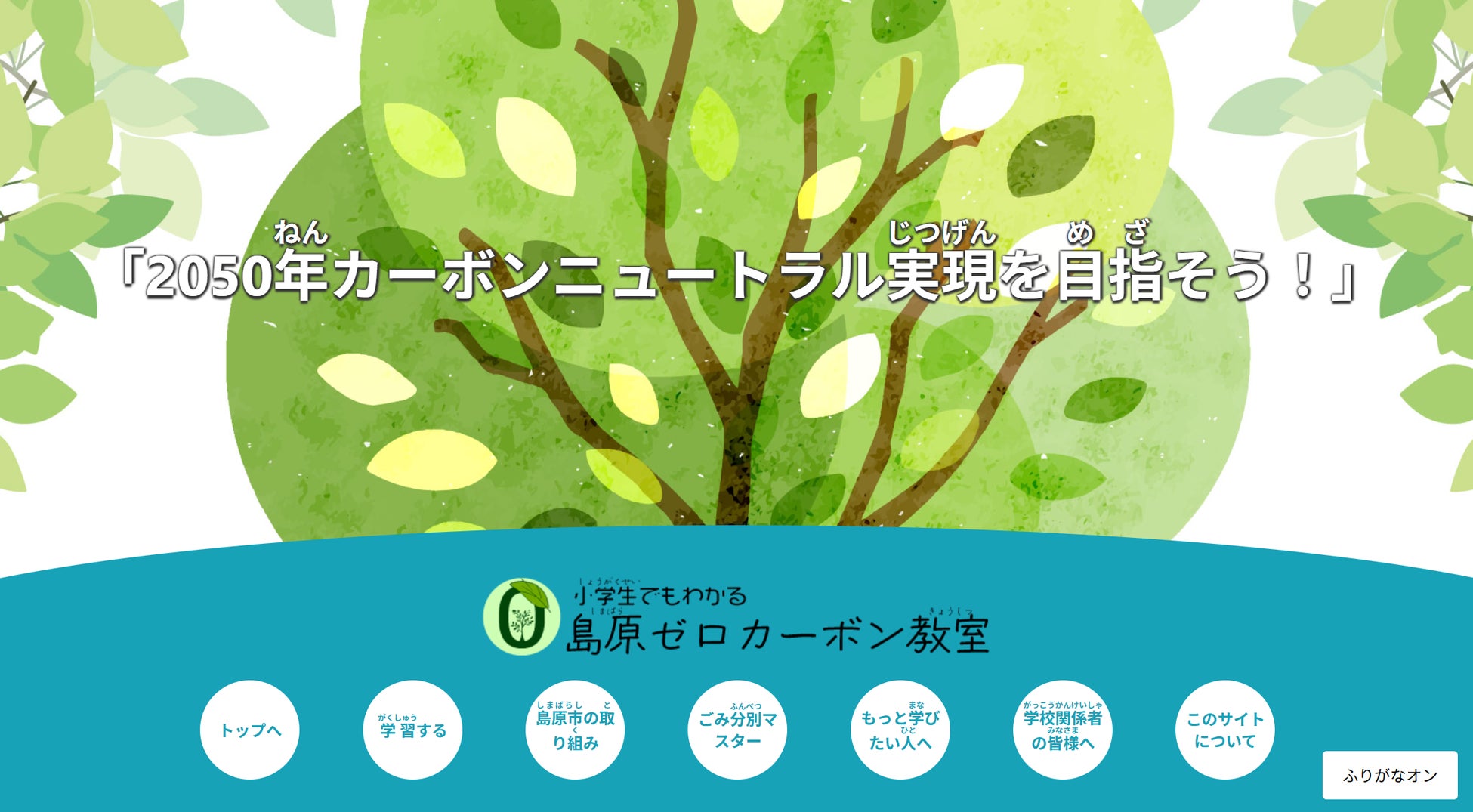 島原市「小学生でもわかる島原ゼロカーボン教室」、ウェブサイトに自動ふりがな機能「ルビフルボタン」を導入