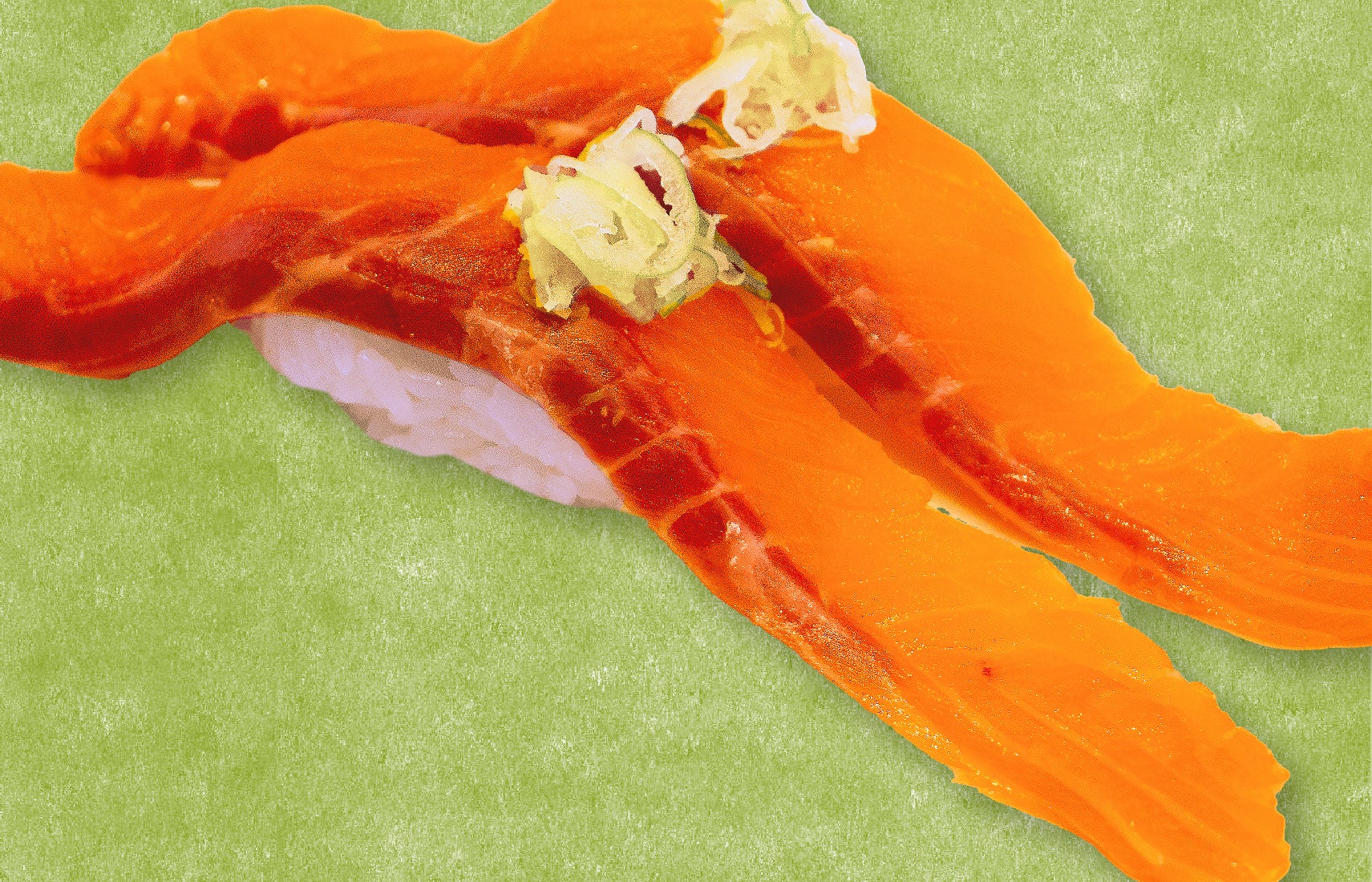 口の中でとろける濃厚な味わいのトロサーモン。日本初の国産アトランティックサーモンを使用した、自信の一品です。