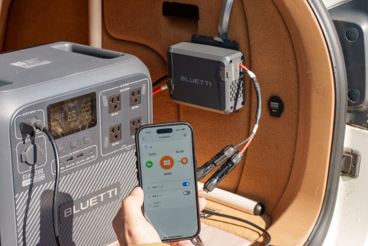 ・車載用オルタネーターDC充電器Charger 1を使えば、走行中に最大500Wで充電可能。
