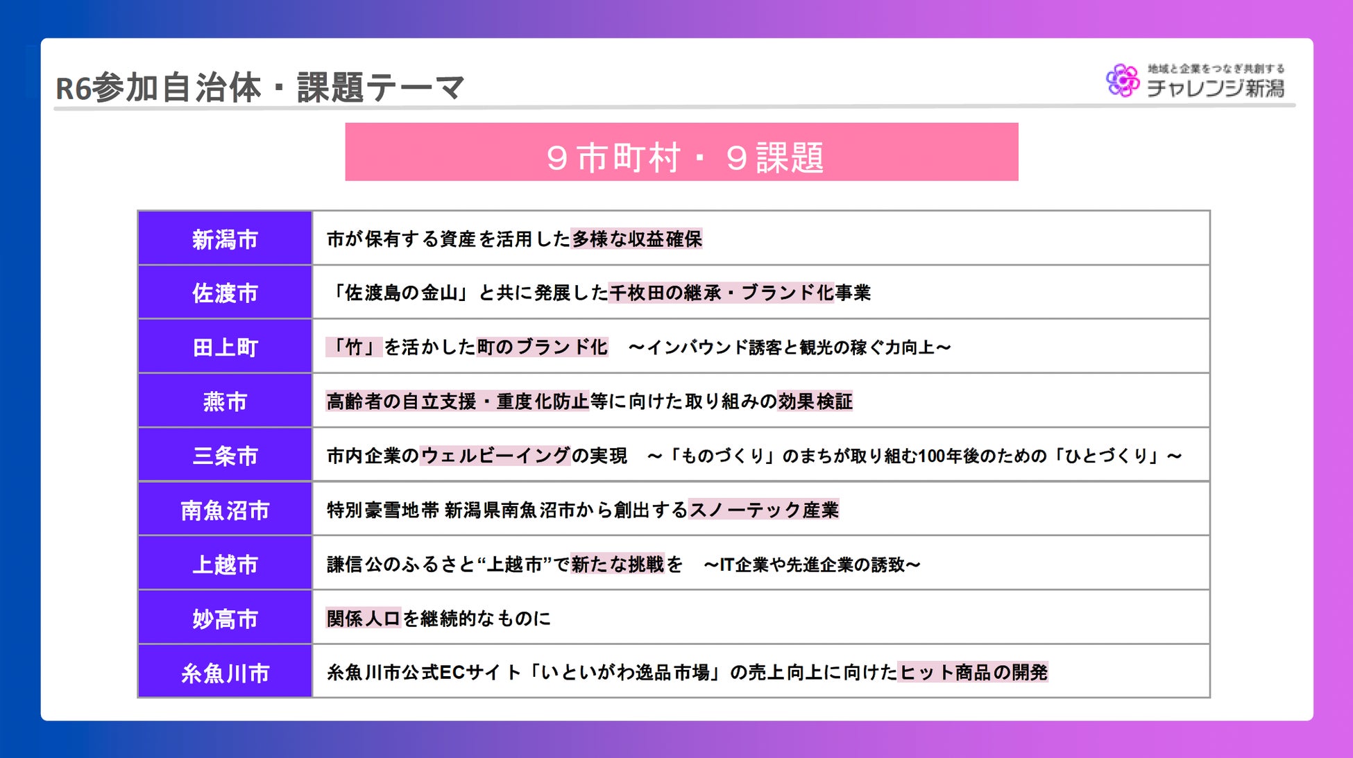 今年度は、新潟県内の市町村に加え、地元企業からの課題も対象に拡大しました。