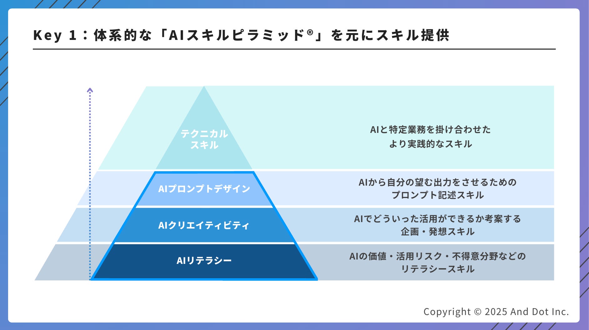 業務効率化に直結するAIスキル(以下のAIスキルピラミッド)
