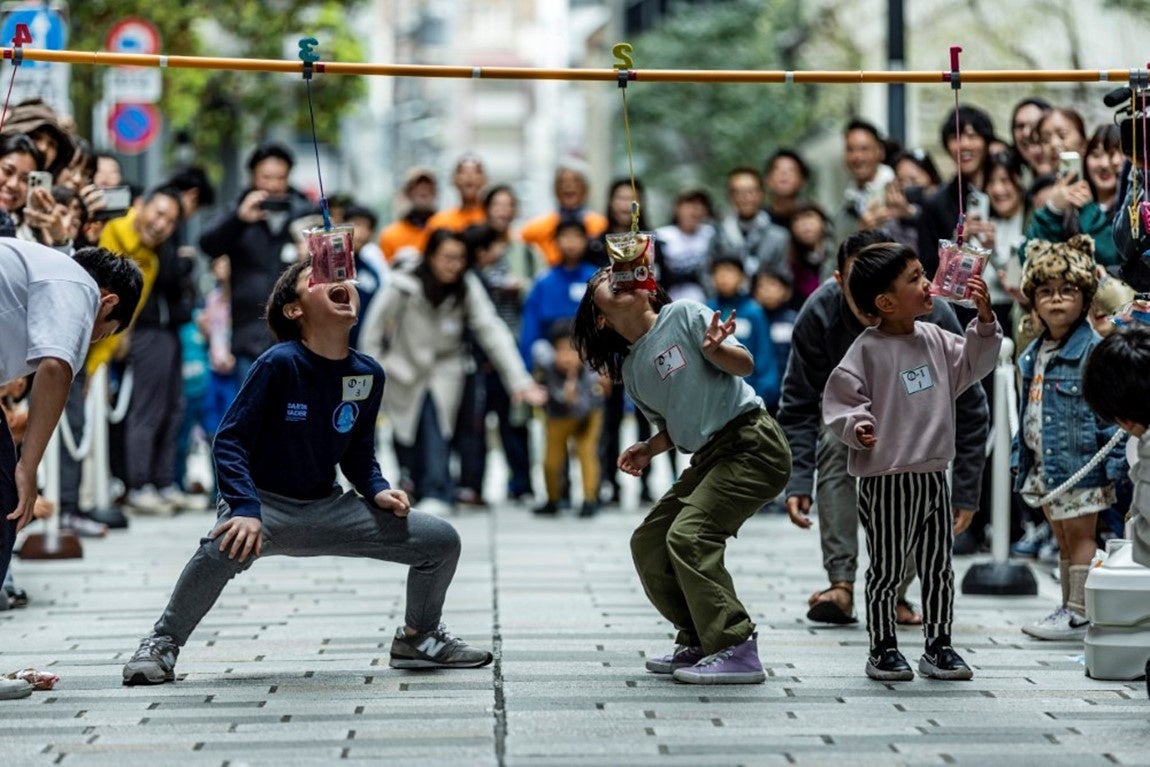 開会式では、スポーツ”パン”シップ宣言と代表者とゲスト(予定)による始走式を行います。参加者は、全長30mのコースの中間地点に吊るされたタカキベーカリーのパンを口にくわえて、ゴールを目指します。誰もが楽しめる、日本ならではのかけっこを全員で楽しみましょう!