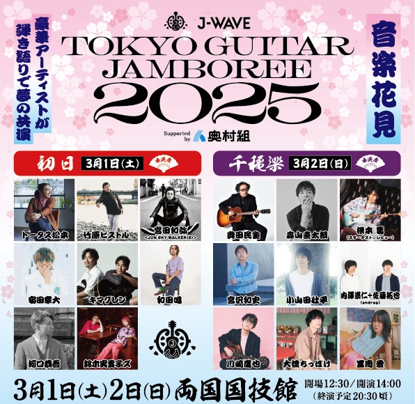 株式会社奥村組(本社:大阪市阿倍野区、社長:奥村太加典)は、2025年3月1日(土)と2日(日)に両国国技館で開催される豪華アーティストが競演する日本最大級のギター弾き語りフェス「J-WAVE TOKYO GUITAR JAMBOREE 2025 supported by 奥村組」に特別協賛します。