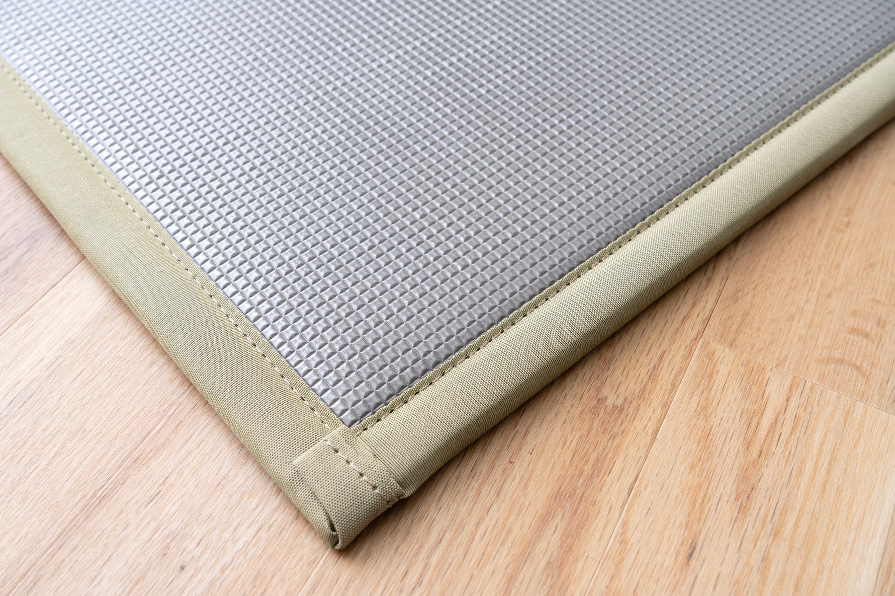 これまで軽量の置き畳は、そのすべりやすさが課題でした。適度なクッション性と軽さを両立させる圧縮フェルトの裏材は、踏み込んだ時にズレやすく、裏面のホコリが取れにくくストレスに。