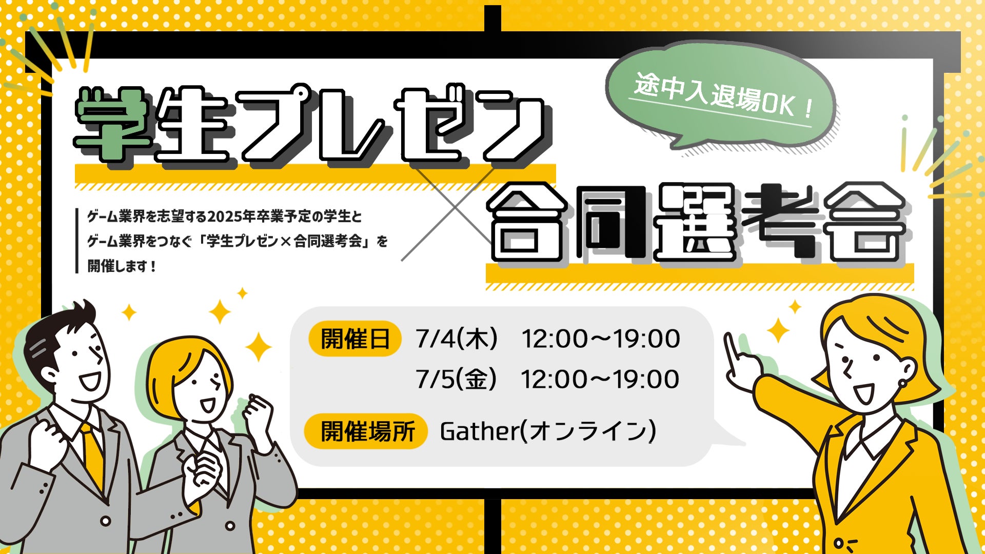 ゲーム業界を志望する2025年卒業予定の学生とゲーム業界の企業をつなぐ「学生プレゼン×合同選考会」をオンラインで開催!