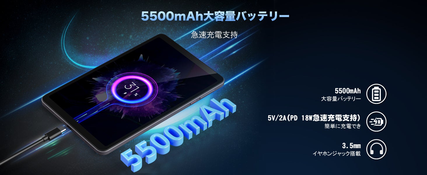 【𝟏𝟖𝐖 𝐔𝐒𝐁-𝐏𝐃急速充電𝟓𝟓𝟎𝟎𝐦𝐀大容量多機能高性能タブレット】