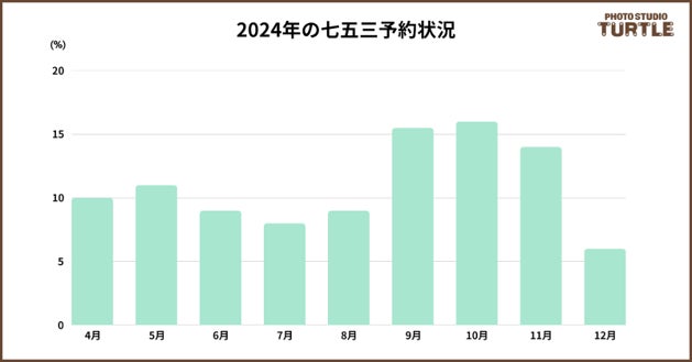 タートルでは、昨年度(2024年)の七五三における予約データを分析した結果(*1)、七五三シーズン(9~11月)でなく、夏前(4月〜6月)までに七五三の予約を完了させているお客様が全体の30%いることがわかりました。