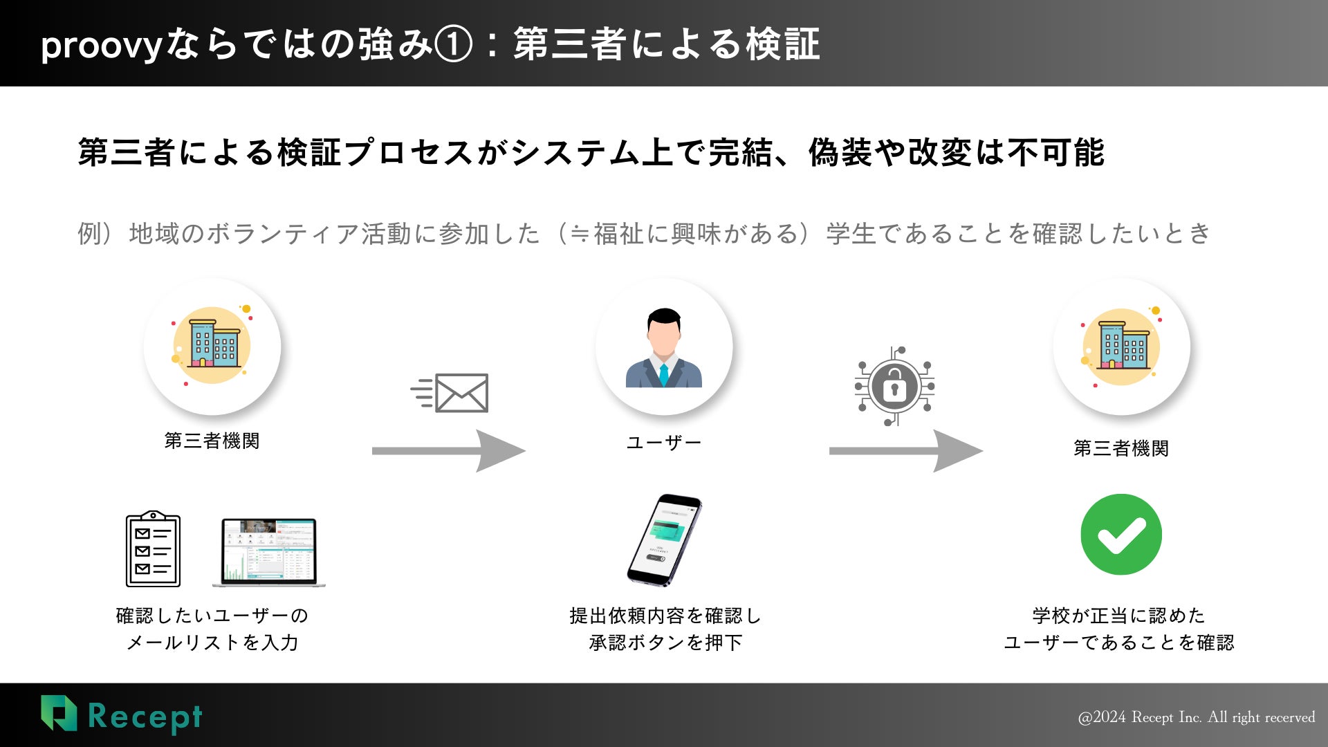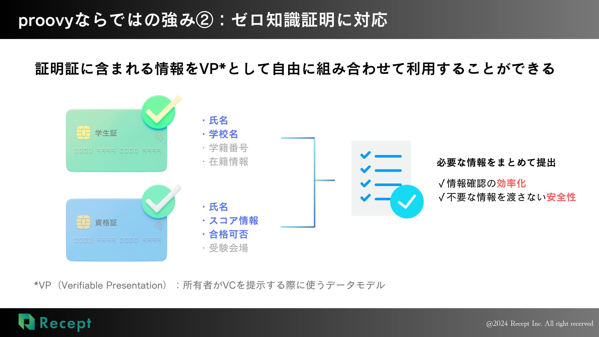 「証明証の正当な保有者であるか否か」を第三者が提供する際にproovyは力を発揮します。