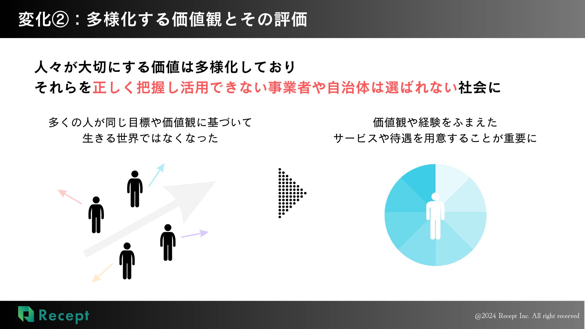 SDGsの普及・働き方の多様化などで、社会において尊重される価値が多様化しています。