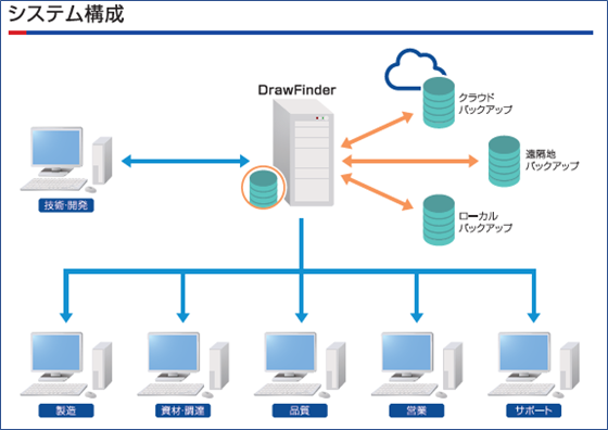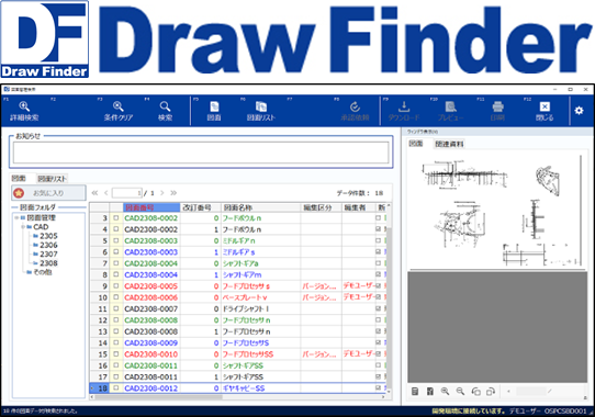 『DrawFinder』は、本格的なPDM※1 や PLM※2 ではなく、図面管理システムのスモールスタートを実現し、既存のシステムに柔軟に対応します。登録した図面情報を様々な形式で管理・表示することが可能です。