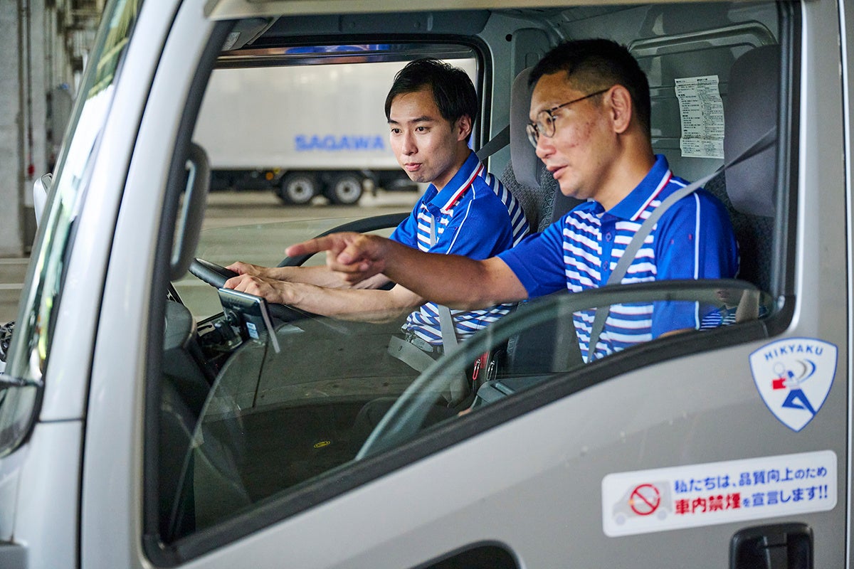 まずは、関係法令に基づいた座学や実技研修を受け、安全運転に関する基礎知識と実践的な運転スキルを習得します。研修が修了した後、上司や先輩ドライバーによる現場での指導が始まります。道路状況に応じた安全運転はもちろん、お客さま対応や当社サービスの基礎知識など、実際の集配業務を行いながら先輩ドライバーに教わります。安全運転、営業スキルがしっかり身に付いたことを確認するための検定に合格すると、晴れて単独での業務が認められます。